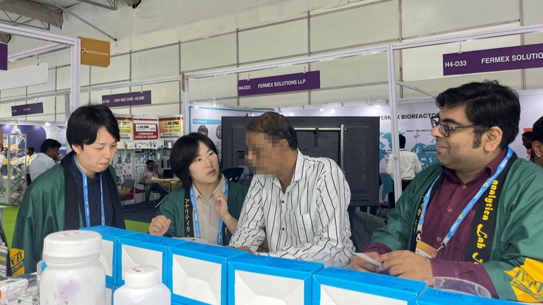 メインミッションは、デリーで開催された水・分析機器の展示会「Analyitica Lab India」への出展です。僕は社員の方々と共にブースに立ち、英語で当社の主力製品「パックテスト」のデモンストレーションを行いました。