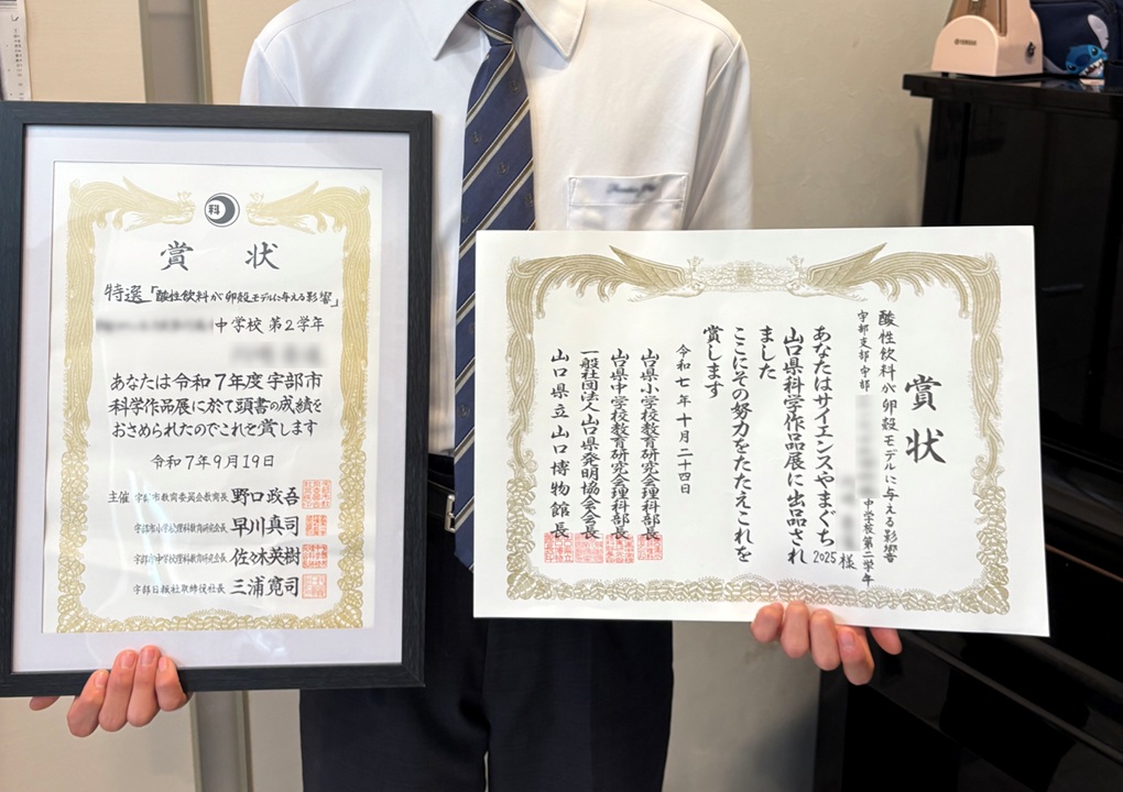 後日、この自由研究が学内で優勝したと嬉しい報告が届きました。