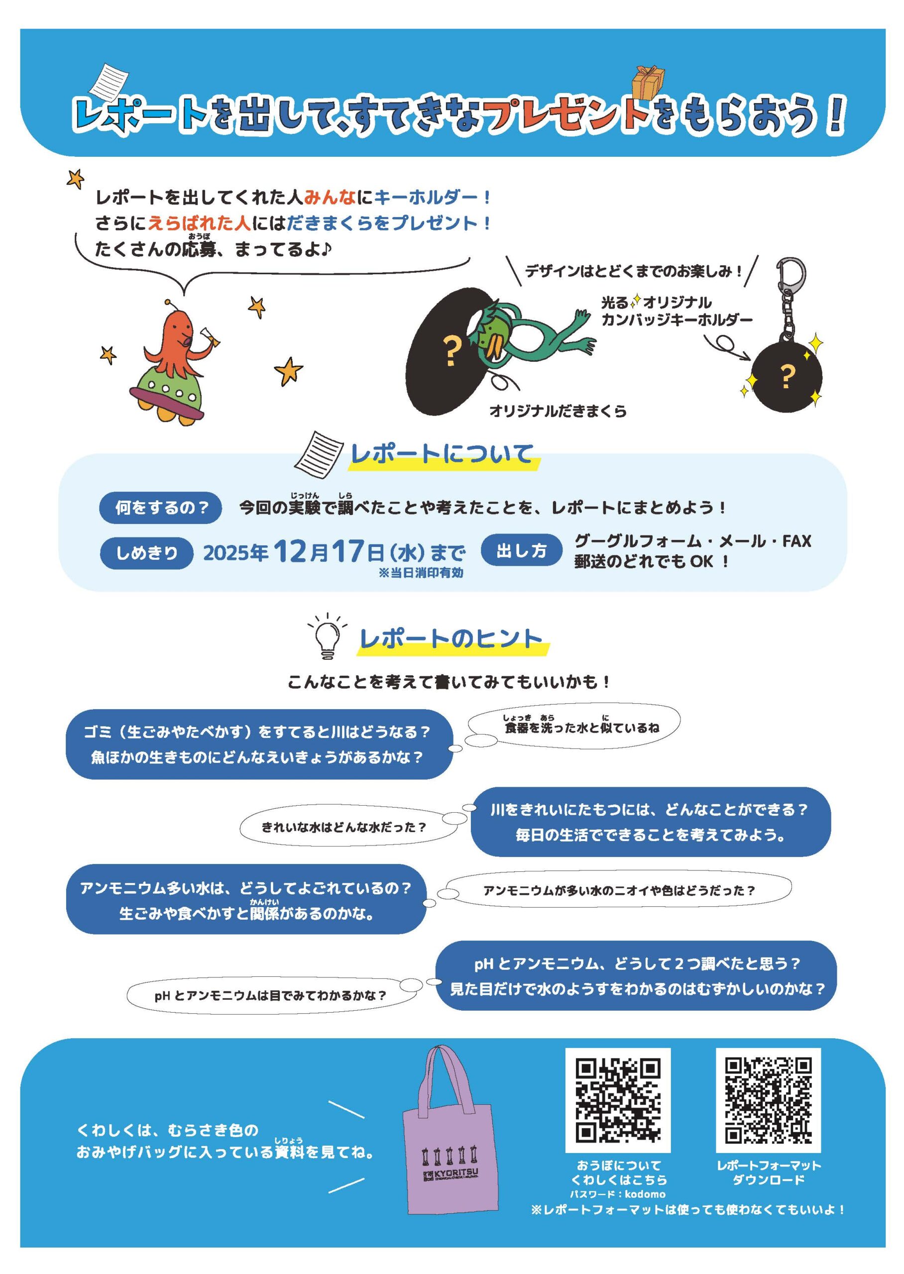 「レポートを出して、すてきなプレゼントをもらおう!」