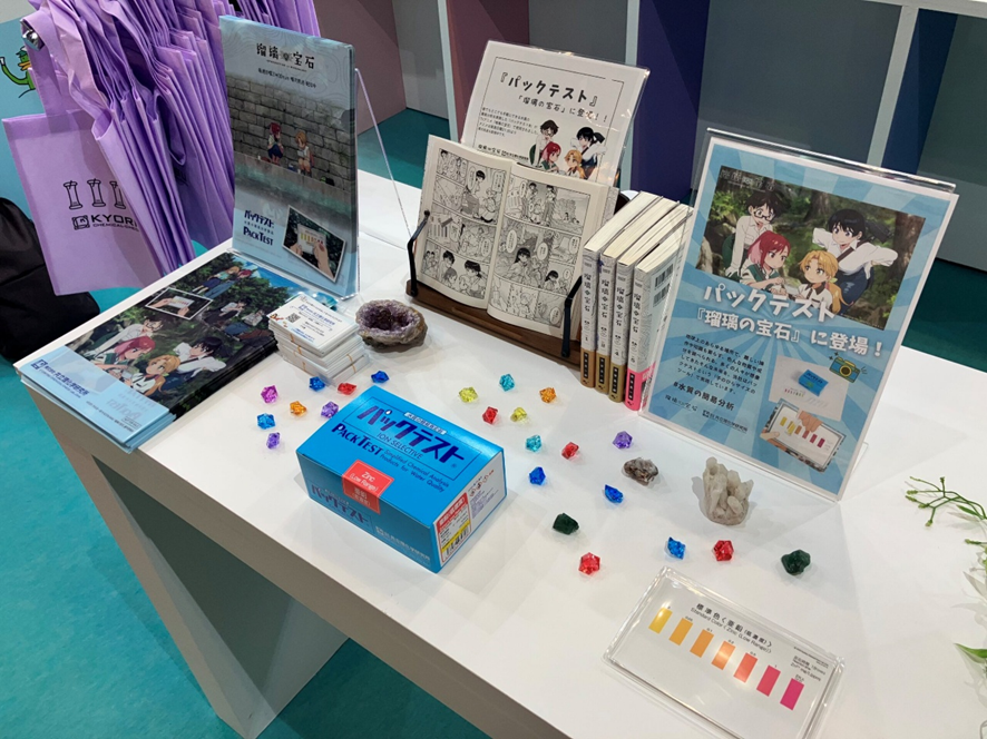 ブース正面には、TVアニメ「瑠璃の宝石」とのコラボスペースや、水槽を用いたデモコーナーを設置。特に「パックテスト 亜鉛(低濃度)」の実演には、多くのお客様が足を止め、簡便性や実用性に高い関心を寄せてくださいました。