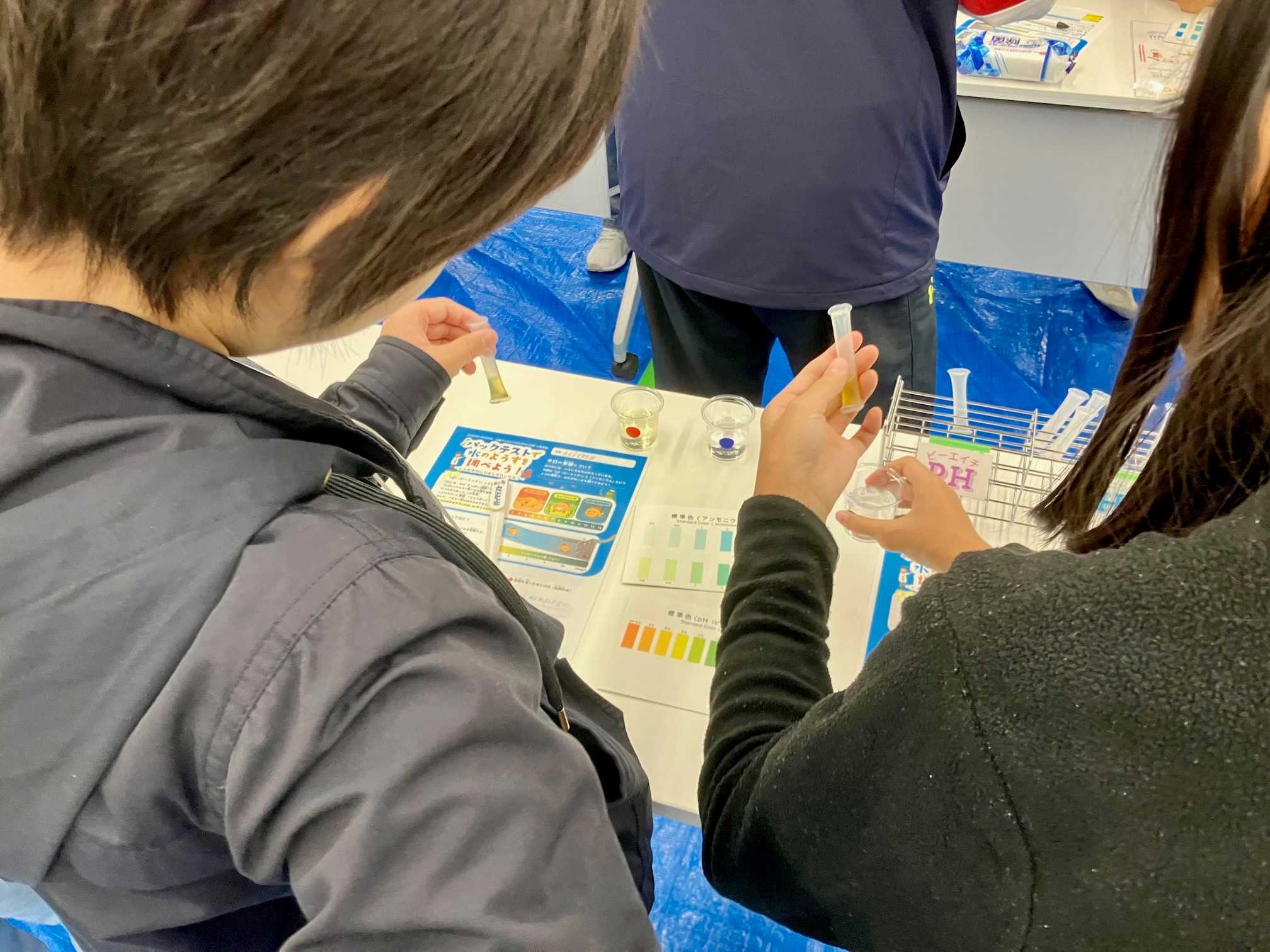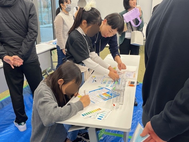 水の状態やパックテストでの測定結果をもとに、どの水がきれいなのか、それともどれが汚いのか、その理由を周りの子どもたちと相談したりしながら体験しました。
