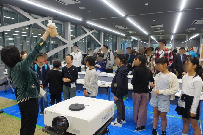 保護者や引率者の方などの大人の方もおもしろそうに見て興味津々です。
