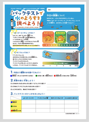 今年のテーマは「パックテストで水のようすを調べよう!~どんな水がいちばんきれいかな?~」です!